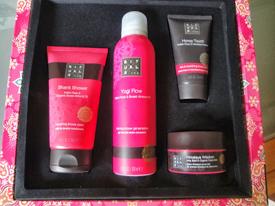 Estas fueron mis compritas, una preciosa cajita para poder probar algunos de sus productos. Tuvieron el detalle de regalarnos una mini talla de su producto estrella, la espuma de baño del aroma Tao